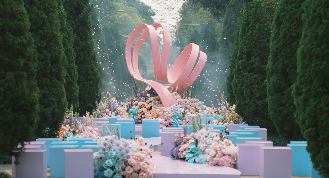 Sweetheart Garden is a dreamy garden where love is expressed through the language of colors and forms. Soft pastel tones like blush pink, baby blue, and lilac blend harmoniously with blooming floral arrangements, creating a light and youthful atmosphere. The highlight of the concept lies in the gracefully curved heart shaped sculptures, symbolizing connection and emotional uplift, placed along a pathway designed as a poetic journey of love.