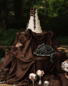 Nâu chocolate là sắc màu mang lại cảm giác gần gũi và tự nhiên nhất trong bảng màu mùa đông. Vừa đủ ấm để trung hòa cái lạnh, lại vừa đủ tinh tế để giữ được vẻ sang trọng. Khi được kết hợp với kem hoặc vàng nhạt, nó giúp không gian trở nên mềm mại và ấm áp hơn, đặc biệt phù hợp với những bữa tiệc trong nhà.