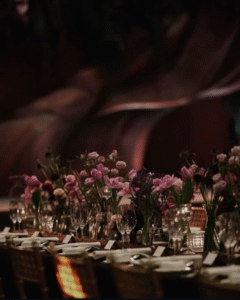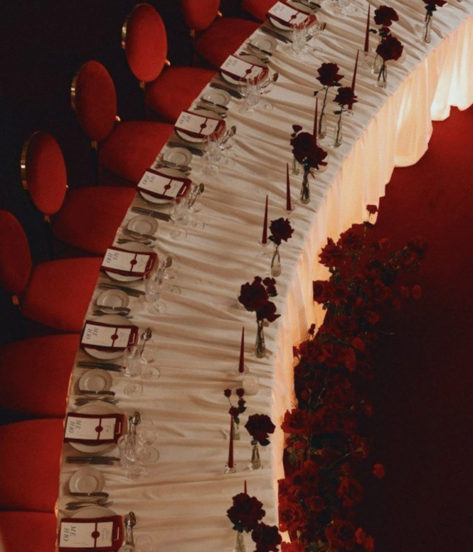 Không gam màu nào biểu tượng cho tình yêu rõ ràng hơn đỏ. Màu đỏ trong đám cưới mùa đông không chỉ tượng trưng cho sự nồng nàn mà còn giúp không gian thêm ấm áp giữa tiết trời lạnh. Khi kết hợp cùng kem hoặc nâu đậm, đỏ trở nên sang trọng mà không quá rực rỡ – vừa đủ để tạo điểm nhấn, vừa đủ để giữ cảm xúc trọn vẹn.