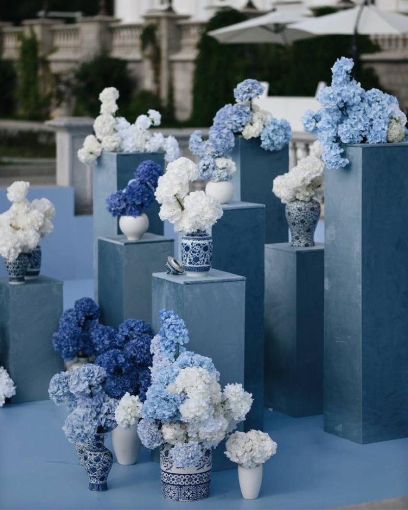 Gam xanh lam luôn có khả năng xoa dịu cảm xúc, nhất là trong những ngày đông yên ả. Từ xanh cobalt đến xanh pastel, mỗi sắc độ đều toát lên vẻ thanh thản và trong trẻo. Khi kết hợp với trắng hoặc ánh kim, bảng màu này tạo nên không gian tươi sáng và hiện đại, như thể mang hơi thở của trời cao vào buổi lễ.
